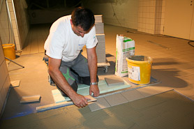 Bei Verlegung in größeren Eirichtungen (Schwimmbädern, Großküchen o. Ä.) auch Arbeit mit Chemikalien (z.B. Epoxidharz) möglich.